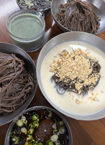 시그니처 메뉴인 들기름메밀소바는 고소한 들기름향과 쫄깃한 면발이 어우러져 깊은 풍미를 자랑하고, 여름철엔 시원한 콩국수가 한 인기를 끌고있는데, 걸쭉하고 고소한 콩국물에 메밀면을 말아먹는 맛이 일품입니다.