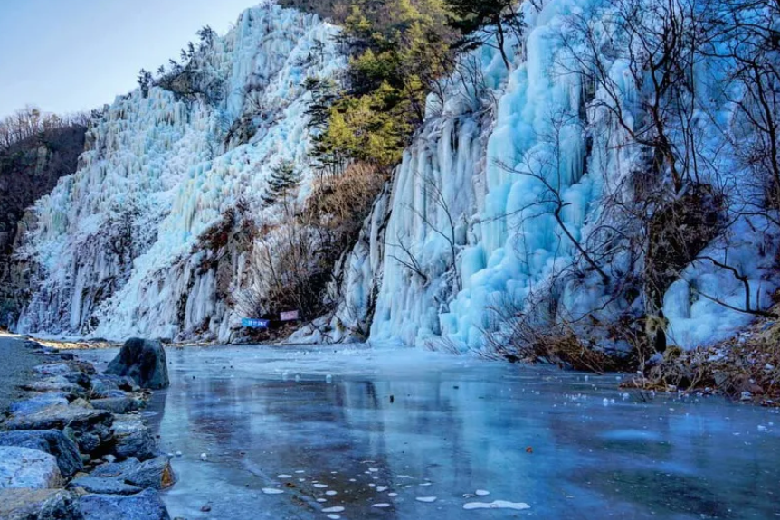 청송 가볼만한곳 베스트10 중 가장 신기한 곳! 청송 얼음골은 한여름에도 얼음이 얼고, 겨울에는 따뜻한 바람이 나오는 풍혈 현상이 일어나는 천연 냉장고예요. 여름철에는 시원한 냉기가 계곡을 가득 채워 천연 에어컨 역할을 하고, 겨울철에는 거대한 빙벽이 형성되어 빙벽 등반 체험도 가능합니다. 청송 가볼만한곳 베스트10 중에서도 사계절 내내 독특한 매력을 느낄 수 있는 곳이죠!