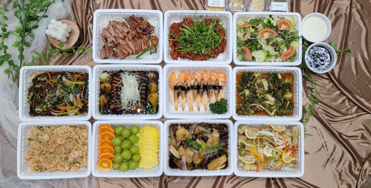 - 수제홈파티 A세트: 11가지 메뉴, 6인 158,000원 / 10인 250,000원