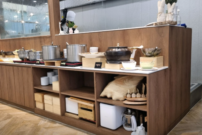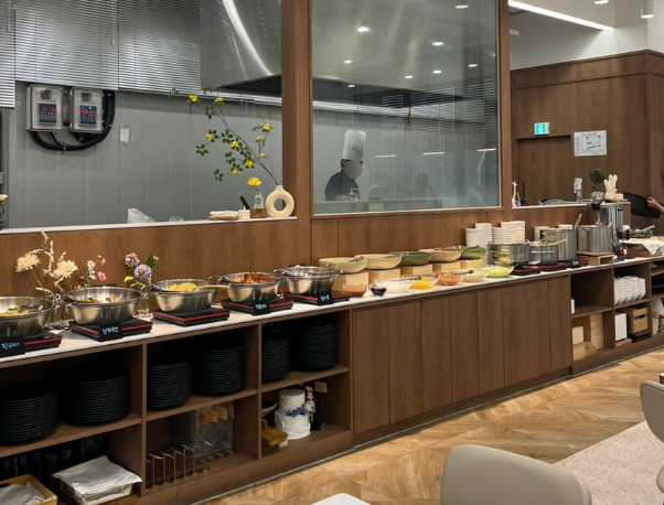 매일 바뀌는 25가지 식단으로 구성되어 있어 자주 방문해도 질리지 않는 구성을 자랑해요. 조리대 뒤편에서 셰프가 바로 볶아내는 볶음요리는 고슬고슬한 식감과 불맛이 살아있어 일반 뷔페와는 차별화된 맛을 경험할 수 있습니다.