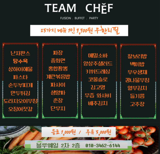 남양주 다산에 위치한 '팀쉐프'는 퓨전 중식뷔페 전문점으로, 블루웨일지식산업센터 2층에 자리하고 있어요. 단순한 뷔페가 아닌 매일 신선한 재료로 직접 조리하는 즉석 요리를 제공하는 것이 가장 큰 특징입니다.